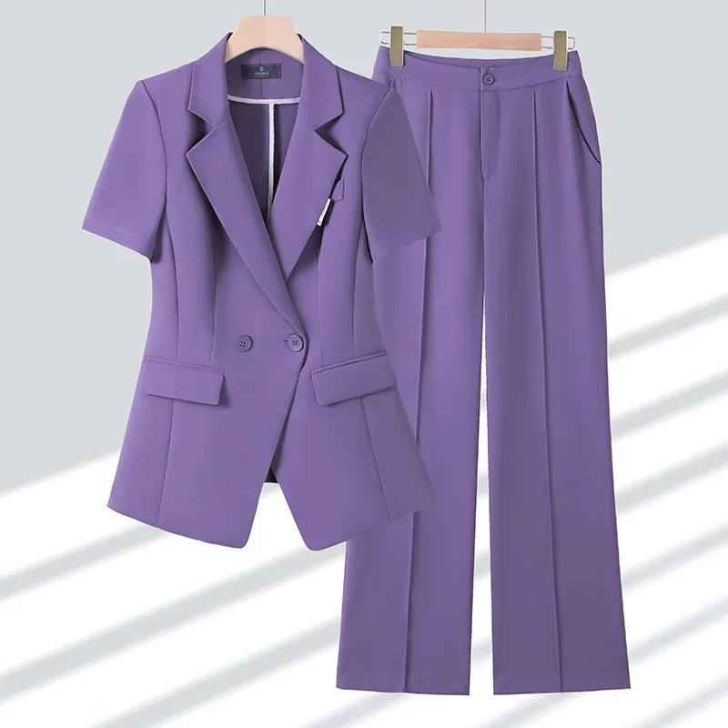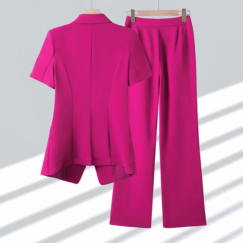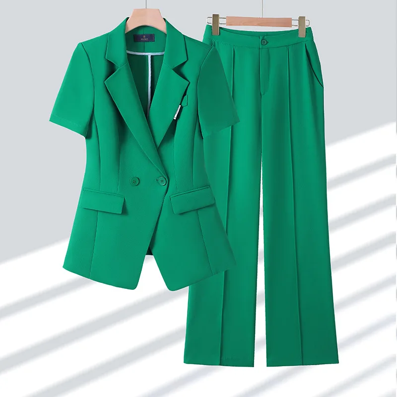 2025 New Fashion Women Suits Short Sleeves Turn Down Collar Blazer Women Chic Solid Pants 2 Piece Sets Office Sets